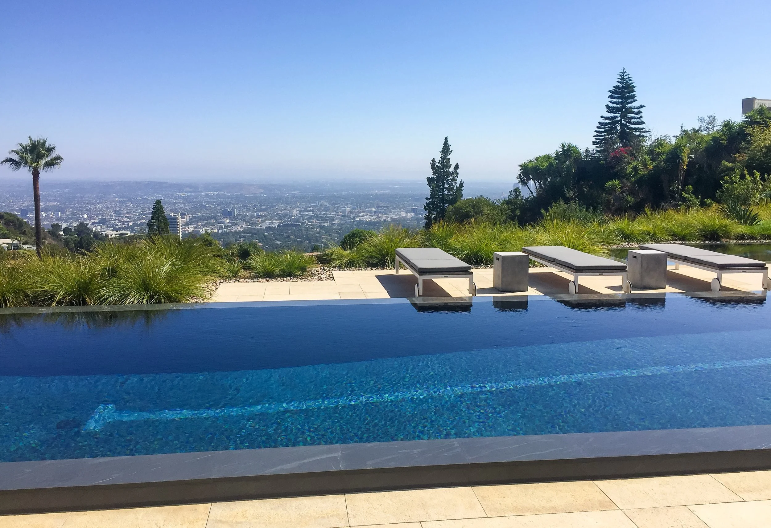 Duane Border created a landscape design composed of spaces and amenities to meet the active lifestyle of the client and capture the energy and potential of the impeccably sited residence in the exclusive Trousdale Estates section of Beverly Hills.